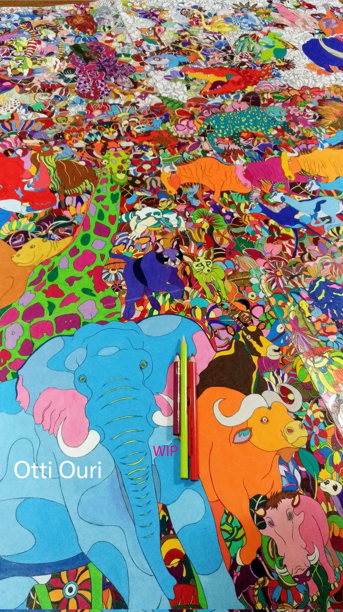 Ottiのアフリカ動物、毎日塗り続けてだいぶ埋まってきました。現在は上の部分を頑張っています🐒 #OttiOuri #art #ArtistOnTwitter #イラスト #高校生 #色鉛筆画 #ペン画 #illustration #絵画 #絵描きさんと繋がたい #イラスト好きな人と繋がりたい #アート好きな人と繋がりたい #Artist #途中経過