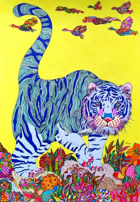 あけましておめでとうございます。今年もどうぞよろしくお願いいたします。平穏無な1年となりますように✨ (寅年なので、虎の絵を。Ottiが15才の時に描いた、「花鳥虎月」という作品です🐯) #謹賀新年2022 #art #illustration #OttiOuri #高校生 #過去絵 #年末年始はSNSなんでも展示会で繋がろう