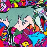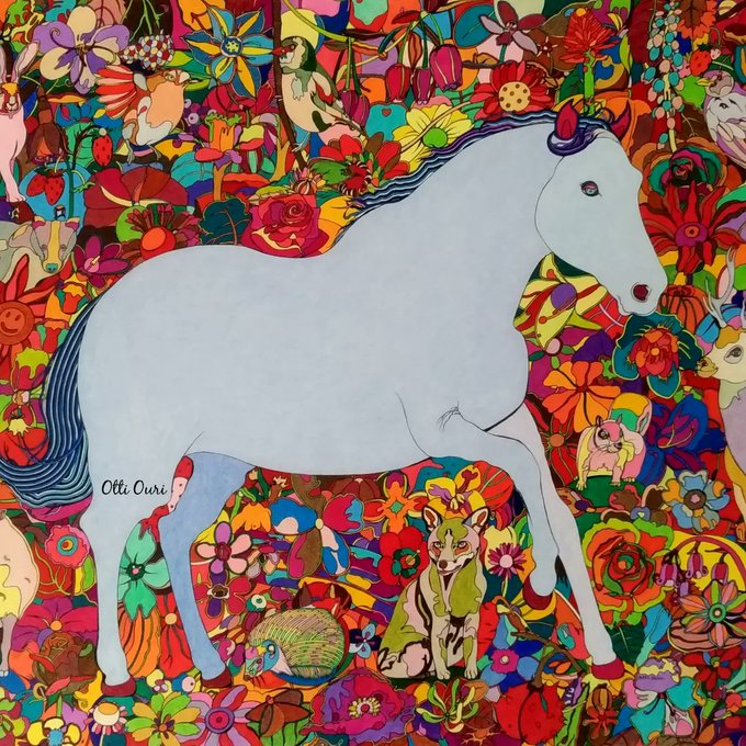 #無言で穏やかな作品をあげよう 馬の神様と森に住む動物たち。 “平和で美しい世界”だそうです。 今日は穏やかな1日になりますように。 #ottiouri #art #modernart #popart