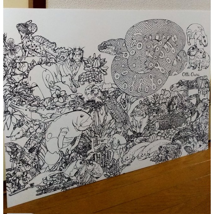 Ottiのアマゾン生物、“水中パート”に続き“地上パート”が完成しました😃やはり彩色に2ヶ月半近くかかりました。次は“空中パート”🦅またまた時間がかかりそうですが、気合を入れて頑張るそうです☺️ #art #artwork #ArtistOnTwitter #ottiouri #絵描きさんと繋がりたい