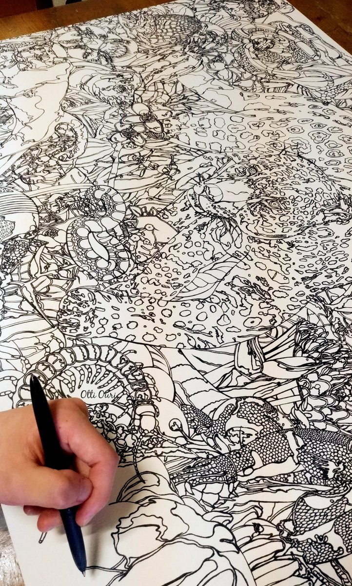 GWの真ん中、皆さまいかがお過ごしでしょうか?Ottiは、連休中も毎日大きな絵を描き進めています🖊️いろいろと細かく絡まり合う線…どうやって塗るのだろう😅 #OttiOuri #art #Artist #illustration #modernart #popart #ペン画 #絵描きさんと繋がりたい