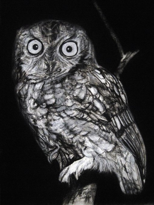 Glen isn’t territorial, but he does keep a close eye on his turf. #StreetArt #SidewalkChalk #AugmentedPareidolia #GreenEyed #Owl