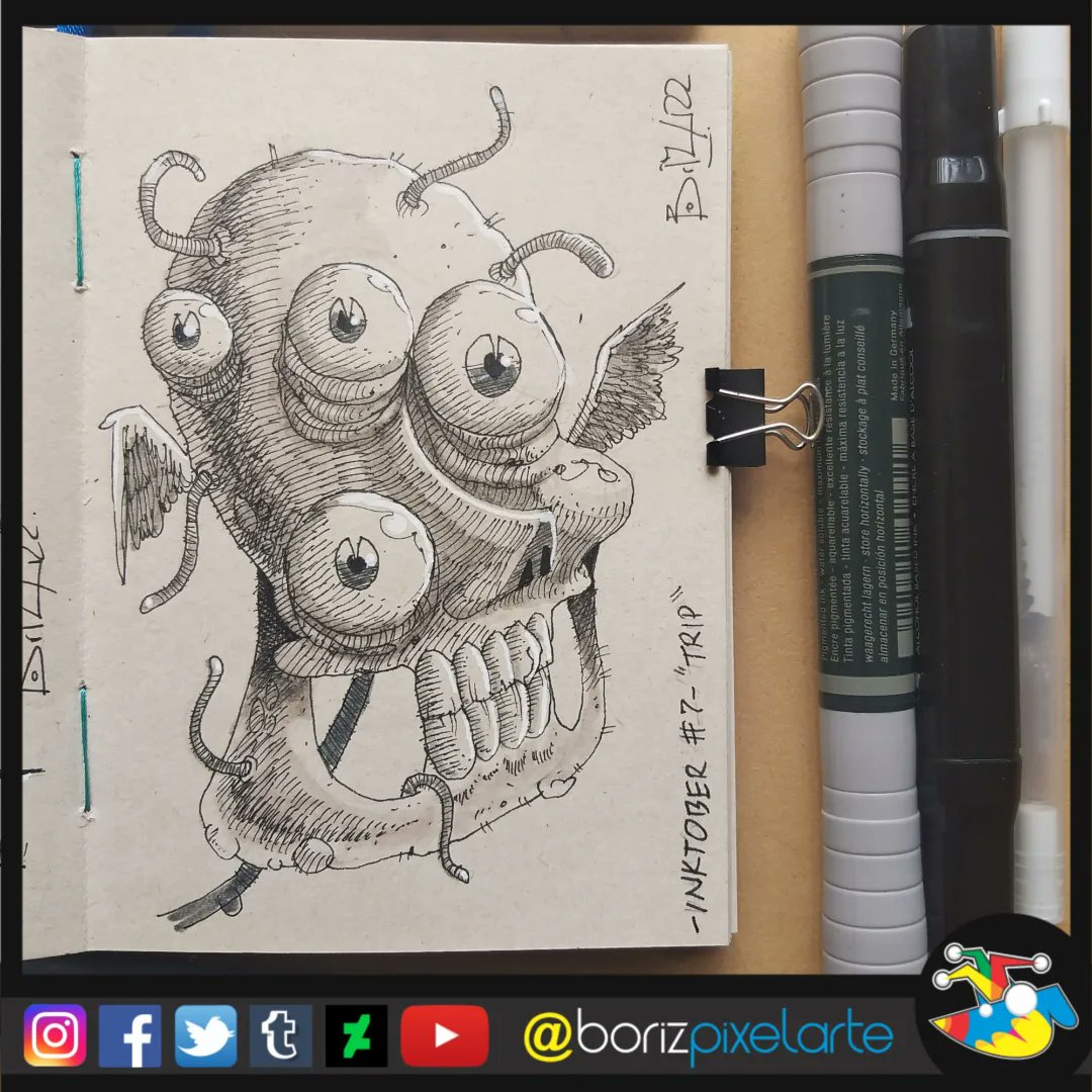 Inktober 07 @inktober @dava22 @Domestika #art #artist #digitalpainting #illustration #artwork #happy #sketch #beautiful #love #cartoon #drawing #dream #design #comics #inktober #inktober2022day7 #painting #trip #creative #ink #dark #crazy #fun #work #cool #comicartist #deviantart