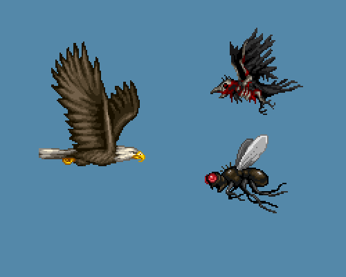 The most basic enemies for #Paradox, the Murdercrow and Corpsefly, you'll be destroying these in their hundreds each play through. Arn't they cute? 😀 #indiegamedev #pixelart #RETROGAMING