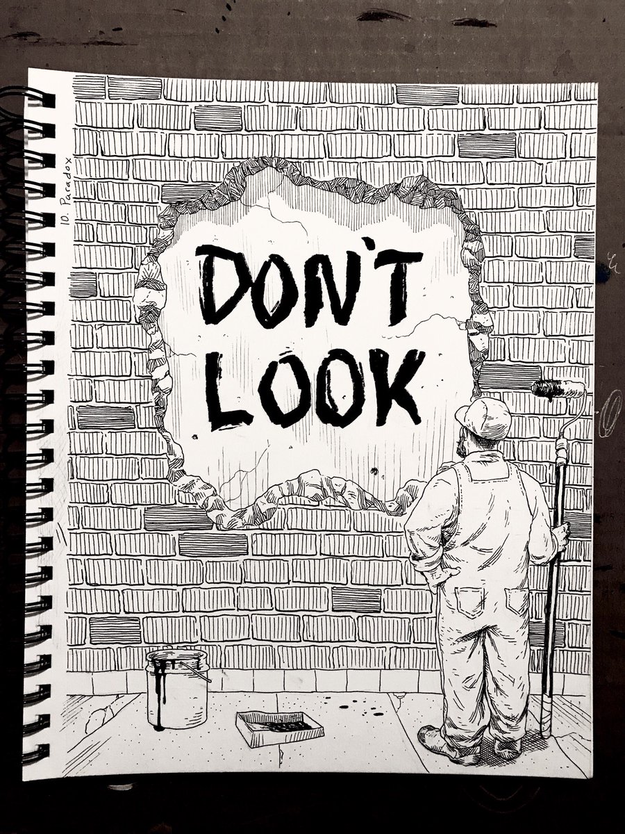 Epik Inktober - Day 10 - Paradox - Ink on 9x12in Multimedia Board #art #ink #inktober #original #forsale #available #movies #houstonartists #houstonart #houstontx #houston #htx #htown #texas #austin #epikmoore #paradox #dontlook #graffiti #urbanart #streetart #painting