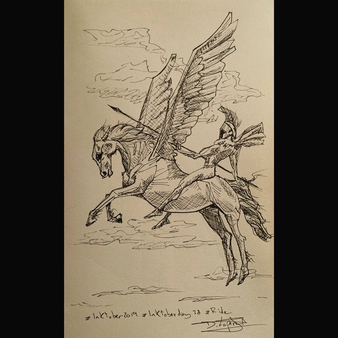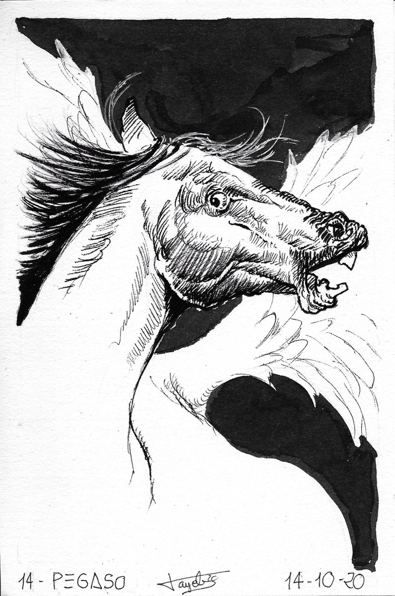 #pegaso (#pegasus en inglés, #pegasum en latín), el caballo alado que llegó a estar entre los dioses (y que dio nombre a una marca de camiones). #inktobertalens #inktobercpiera @_vsanz_ @royaltalensspain @CasaPieraBCN #inktober #inktober2020