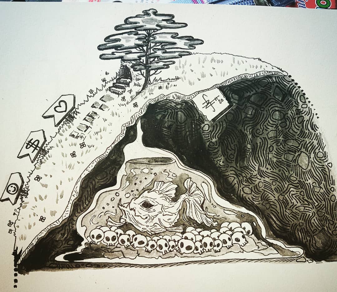 Dia 31: Crawl . . . #Inktober #inktober2020 #inktoberEs #inktoberchallenge #ink #fish #pez #WISP #traditional #art #October2020 #inktober2020day31 #inktober2020day31crawl #terror #crawl #SURVIVORHORROR #hololiveEN #hololive @gawrgura @ninomaeinanis #gawrgura #anime