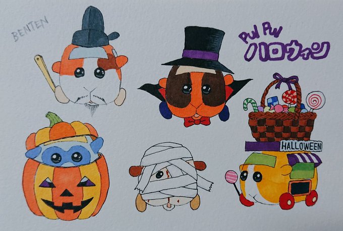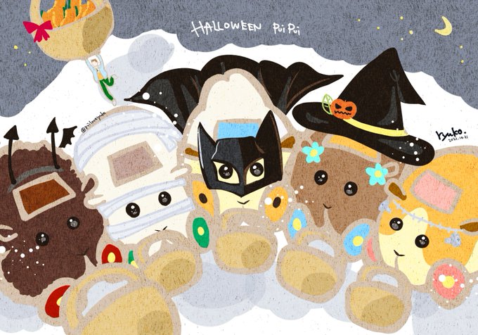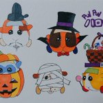 ハロウィンぷいぷいたちかきました。うるうるキラキラの瞳でぷいぷいたちに迫られたいという妄想です🥺なんぼでもおやつをあげたいですね……!!!!💞 #PUIPUIハロウィン #モルカーファンアート