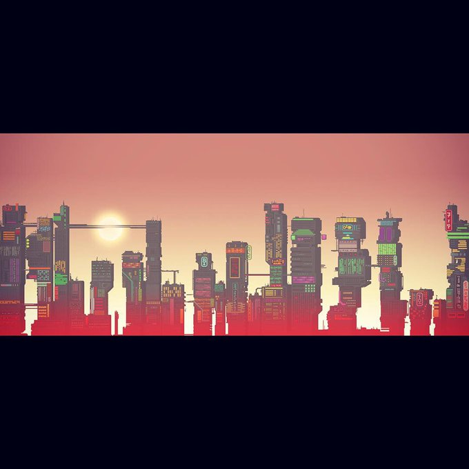 Parallax background layer from The Rail Runner, a cyberpunk runner game. #pixelart #pixel #cyberpunk #80s #dystopia #indie #indiegame #game #videogame #parallax #8bit #background #backgroundart #2D #future #futuristic #city #cityscape #retro