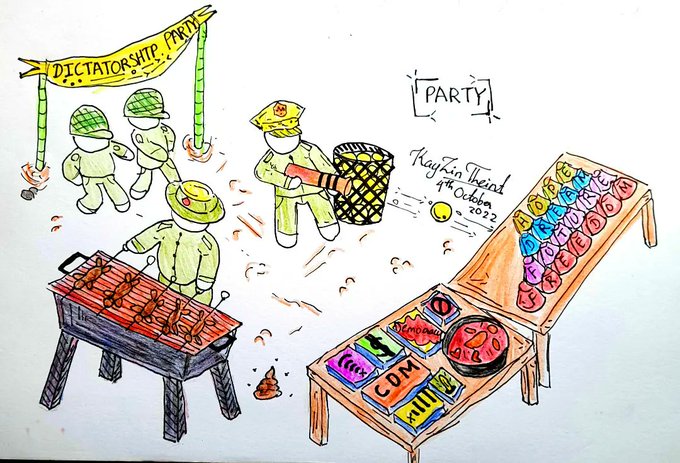 Revotober Day 4: Party Dictators are killing our people and thought that they are winners ⚠️ #revotober #Revotoberday4 #inktober #party #ink #colorpencil #loveart