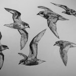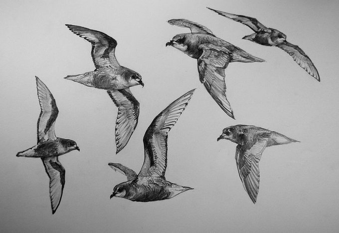 #ハジロミズナギドリ #ProvidencePetrel #Pterodroma #Petrel を #スケッチ #ドローイング 北太平洋亜寒帯海域で低気圧通過の時、何故かよく見た。荒天に伴い増す風を受け、頂点が高く大きな弧で滑翔する黒くて翼端白いこの鳥を"嵐鳥"と呼ぶ船員も‥昨日はグライダーで水平+旋回の基礎練習‥後、大雨‥