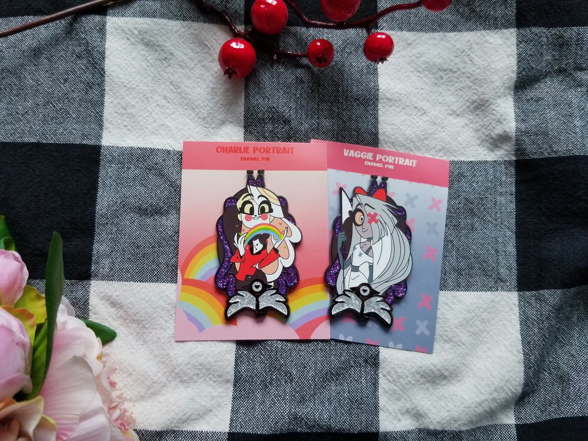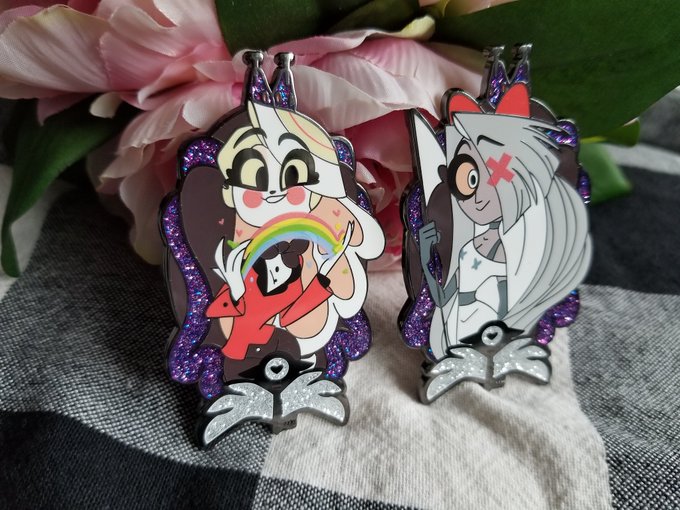 THE PINS ARRIVED!! I absolutely love how these turned out!! My sis did a fantastic job with these! She'll be listing some left over pins on Etsy soon, I'll post when they're live 💖💖 #HazbinHotelFanart #HazbinHotel #HazbinHotelCharlie #HazbinHotelVaggie #Pins @hazbinfanmerch