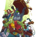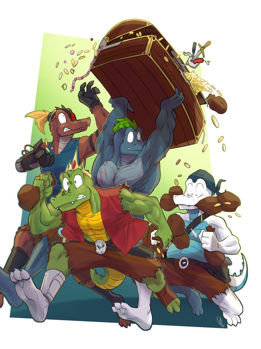 🤝 Art trade with @mctaylis 🚹 Krohber, Lozedig, Goraam and Nelhàs 🕑 6h [] TAGS [] #oc #originalcharacters #digitalart #furry #crocodile #pirates #treasure #illustration #adventure #fantasy #humoristic #characterdesign #simplebackground #silly #badass #muscles #arttrade