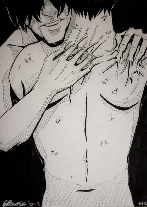 #inktober2019 Day 14 "Without you, I'm nothing." #inktober #Inktoberday14 #Inktober2019day14 #horror #bodyhorror (Yes that is a #Placebo reference 💔)