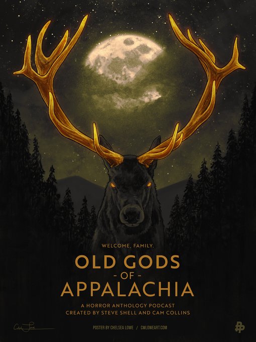Today we launch "Listen UP!" a tribute to our favorite podcasts. First up is Poster Posse artist @cmloweART with her stunning tribute to @oldgodspod It's spooky, it's creepy, go give it a listen! #Podcast #poster #posterposse