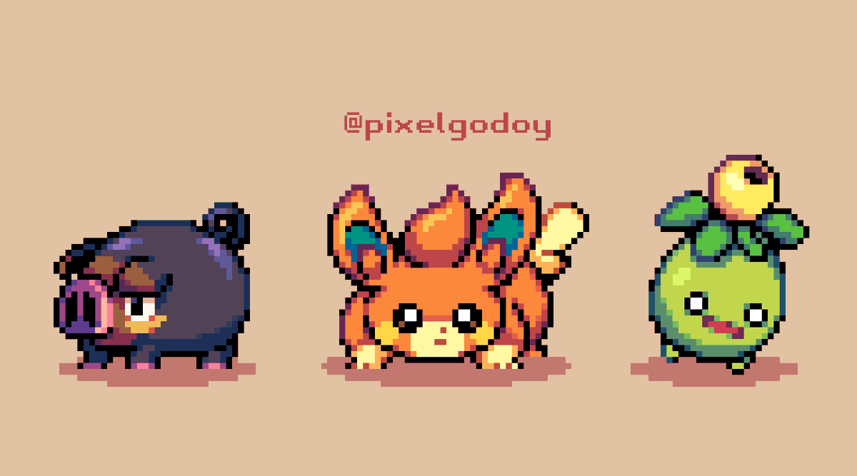 Lechonk, Pawmi & Smoliv - Pokémon Scarlet & Violet❤️💜 #pixelart #pixel #pixels #ドット絵 #픽셀아트 #pokemon #pokémon #pokemoncommunity #pokemonfanart #pokemonscarletandviolet #pokemonart #anime #aesthetic #digitalart #sprite #digitaldrawing #art #cute #cuteart