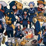 I drew more PLA chars sync move art, hoping it'll be real someday (idk how it would work story wise tho. lol) quite satisfied with the results so I'll print these for #comifuro16, along with Warden Ingo version! #PokemonLEGENDS #PokemonLegendsArceus #Akari #Rei