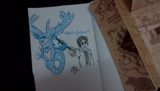 (spark) "Make it a powerful memory , the happiest you can remember" Just remember your patronus can only protect you for as long as you stay focused" _Harry Potter_ #Inktober #Inktober2021 #Day27 #Sal_A_Drawings #Potterhead #Spark