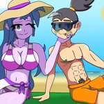 [#OC Art/#PridefulDiamonds/Falvia is owned by @SonicStarGenie] Falvia and Heist are both ready to hit the beach and have fun, they also took a quick pic too! :3 🧡💖💜⛱ #ArtistOnTwitter #digitalart #OCShip