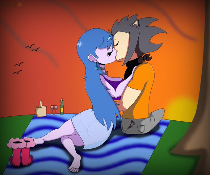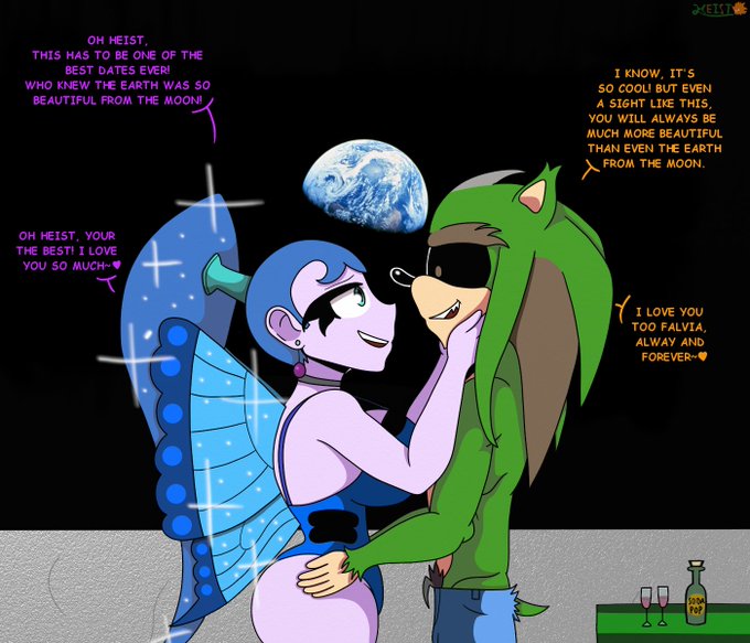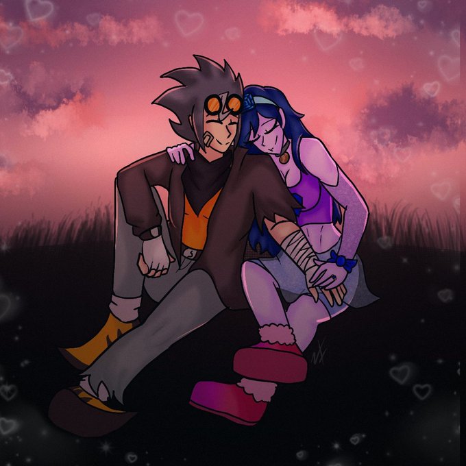 [#PridefulDiamonds Art/Falvia is owned by @SonicStarGenie] Heist and Falvia celebrate their Valentines day watching a beautiful sunset together.🧡💖💜 #oc #ArtistOnTwitter #digitalart #ValentinesDay