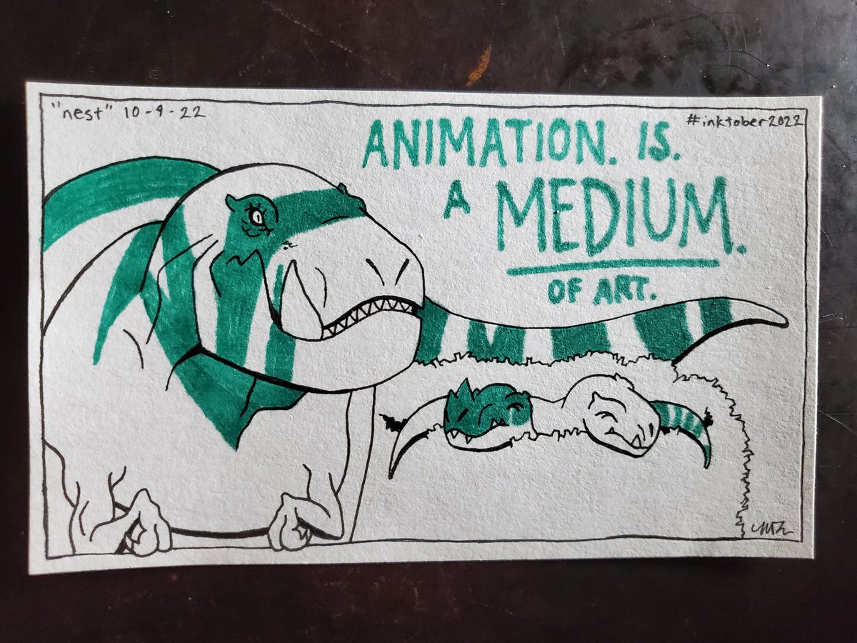 Day 9 of #inktober ! Todays prompt is Nest and I drew Spear and Fang from Primal. Spear is helping Fang make a nest for her babies #traditionalart #inktober2022 #inktober2022day9 #inktoberday9 #primal #artist #art #ArtistOnTwitter #moots #artmoots