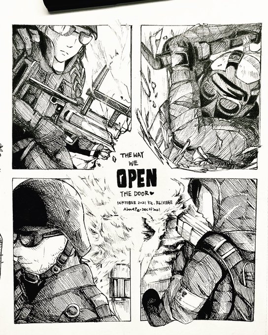 - open - Still working hard to complete inktober though it’s December now...😫 But I still love R6. Will try to finish inktober before 2022...💪 #inktober #inktober2021 #inktoberday22open #r6siege #r6fanart