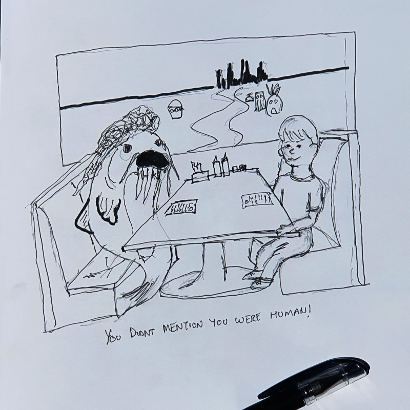 Catfished Catfish Inktober 2020 - 1 - Fish A wacky idea born from the fusion of suggestions of "catfish" and "something fishy" #inktober #inktober2020 #pen #draw #sketches #drawingoftheday #illustration #art #exploratorium #markerart #catfish #spongebob #memes #reverse #date