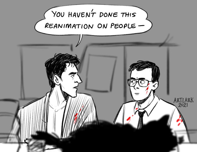 .@Tony_Deppen having a bad Re-Animator kinda day. It's probably @theonlyoya's fault, too. #prowrestling #fanart #reanimator #artwork #drawing #AEW