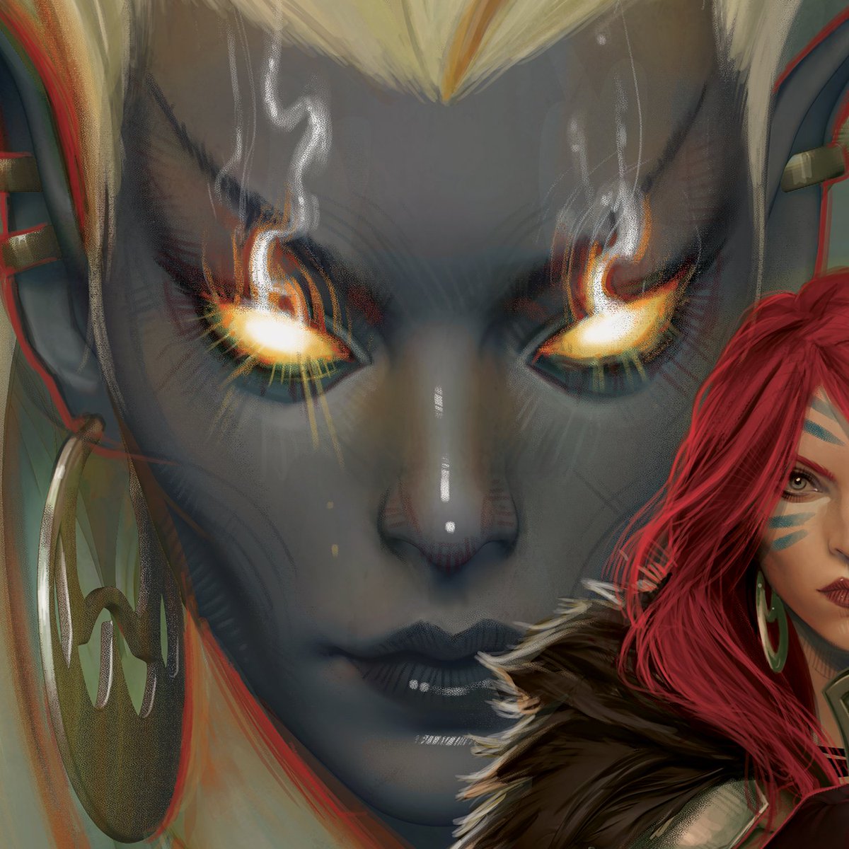 Some close-ups of my variant cover for Red Sonja/Hell Sonja #4 ⚔️⚔️⚔️ #RedSonja #coverart #art #digitalart #illustration #DynamiteComics