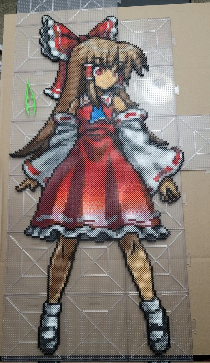 Reimu's almost done! Just need her gohei! #touhou #reimuhakurei #touhouproject #touhousprite #perler #perlerbeads #art #東方Project #touhouart