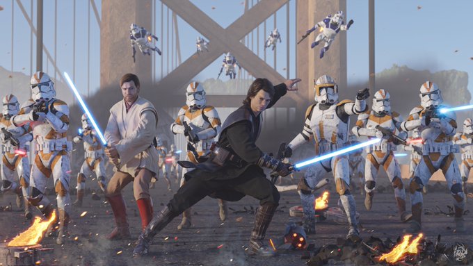 You're not serious. There's only a thousand droids down there! "Clever Trick" #StarWars #Blender #Fanart #CloneWars #Rendering
