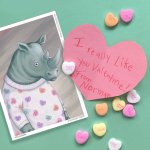 Norman and I wish you a happy Valentine's Day! A big thank you to my many friends who have been so uplifting! ❤️ ❤️ ❤️ #kidlitart #illustration #conversationhearts #rhinoceros #lizgouletdubois #prospectportfolio #ValentinesDay