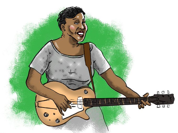 Today's Dead Celebrity Spotlight is Sister Rosetta Tharpe. #singer #guitarist #music #deadcelebrityspotlight #SisterRosettaTharpe #africanamerican #woman #WomensHistoryMonth #art #rockandroll #drawing #photoshop #illustration blog.marshotelonline.com/2022/03/25/dcs…