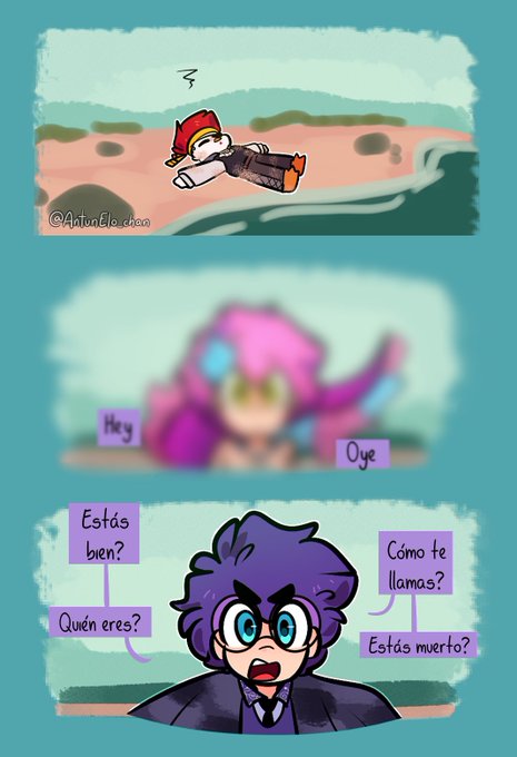 No me decidía por una canción asiq en lugar de hacer un cómic musical hize esta cosa rara con referencias a 3 canciones xD #CoMPaS 👑💙🤍 #RoyaltyCoMPaS (1/?)