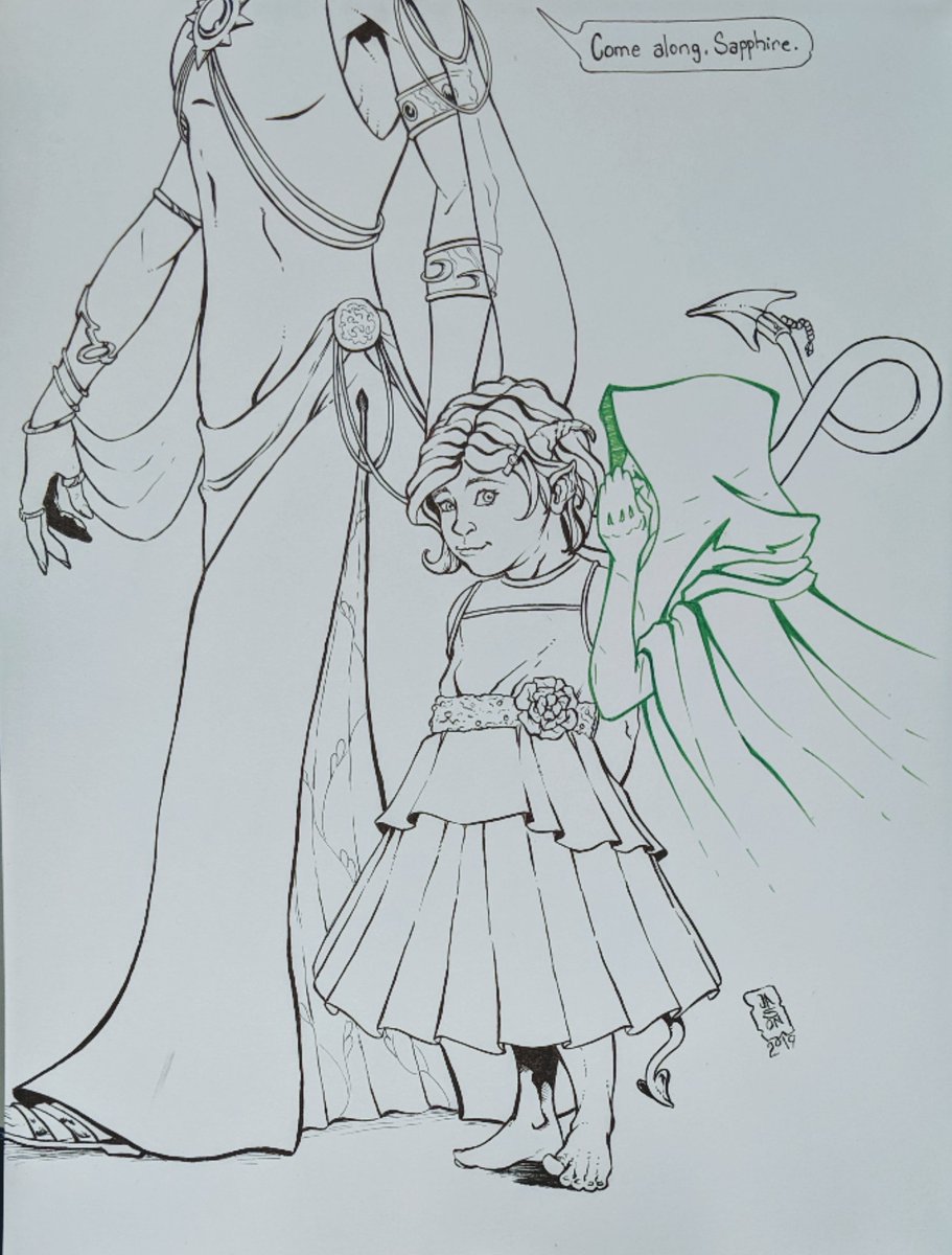The young "Ruby of the Sea", Marion Lavorre, with a young Jester at the Lavish Chateau. #criticalrolefanart #criticalrole #jesterlavorre #rubyofthesea #marionlavorre