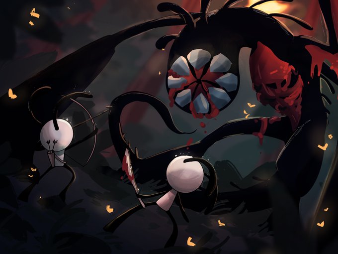 // horror themed creature , blood obsessed with these tiny lil guys, so i redrew this one scene hehe #kunehofanart #kuneho #sadistfanart #sadistredraw #sadistappreciation