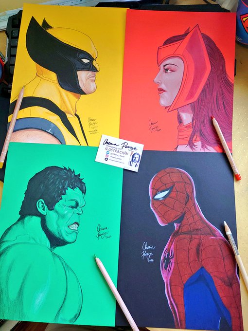 PERFILES MARVEL Estas son las 4 ilustraciones que llevo hasta ahora de los Perfiles Marvel. La serie constará de 8 en total y quedará ideal para decorar vuestras casas con estos personajes tan memorables. ¡Buenos días y feliz Domingo! #Wolverine #Hulk #ScarletWitch #Spiderman