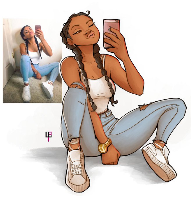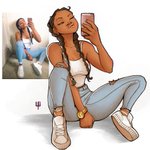 Here’s my art vs artist for this year 🎨👧🏽☕️ #artistontwittter #artwork #drawings #painting #WWE #selfie #traditionalart #digitalartists #couple #artvsartist2022 #draw #mermaid #me #creativity #hero #ink #pose #people #sketchbook #Sketching #artsy #updo #hat #durag #cape #bubble