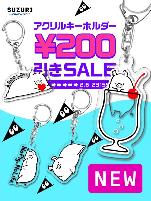 \ ✨🐽アクキーセール🐽✨ / 2/6(日)までSUZURIでアクキーリリースセールが開催中!200円お得です!!前髪ぱっつんも豚キーホルダーデザインしてみました(〃艸〃)豚だらけです!! ぜひのぞきにきてください~~! #suzuri #SUZURIのアクキー suzuri.jp/maegami_27