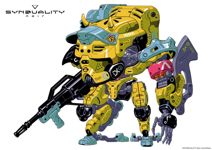 ホーンドウルは 優秀なハンターである猛禽類 「ミミズク(horned owl)」 から直球で名付けました。 マーキングも少しミリタリーな イデアール式になっています。 アニメ「SYNDUALITY Noir」 2月12日24:00~放送の 第18話を どうぞよろしく! #SYNDUALITY #シンデュア