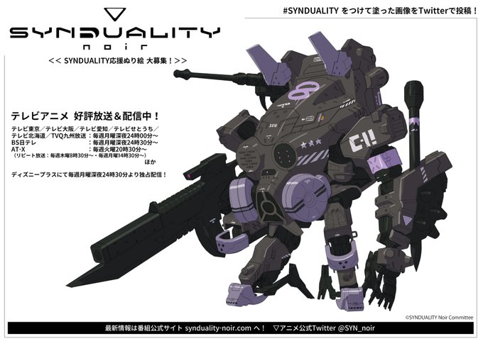 ホーンドウルは 優秀なハンターである猛禽類 「ミミズク(horned owl)」 から直球で名付けました。 マーキングも少しミリタリーな イデアール式になっています。 アニメ「SYNDUALITY Noir」 2月12日24:00~放送の 第18話を どうぞよろしく! #SYNDUALITY #シンデュア