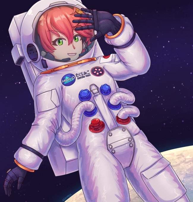 This was commissioned by an anonymous via Pixiv Request feature, Sakura Miko of Hololive in a space suit. #Hololive #SakuraMiko #miko_Art