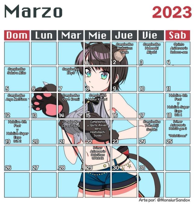 Bienvenidos a Marzo! ✨ Este mes celebramos los cumpleaños de: #MomosuzuNene #HanasakiMiyabi #SakuraMiko #IRyS #AnyaMelfissa #OuroKronii #HakuiKoyori #CeresFauna #HoshimachiSuisei y #YakushijiSuzaku 🎂 ...🔽 FanArt por: @MonsiurSandox #プロテインザスバル