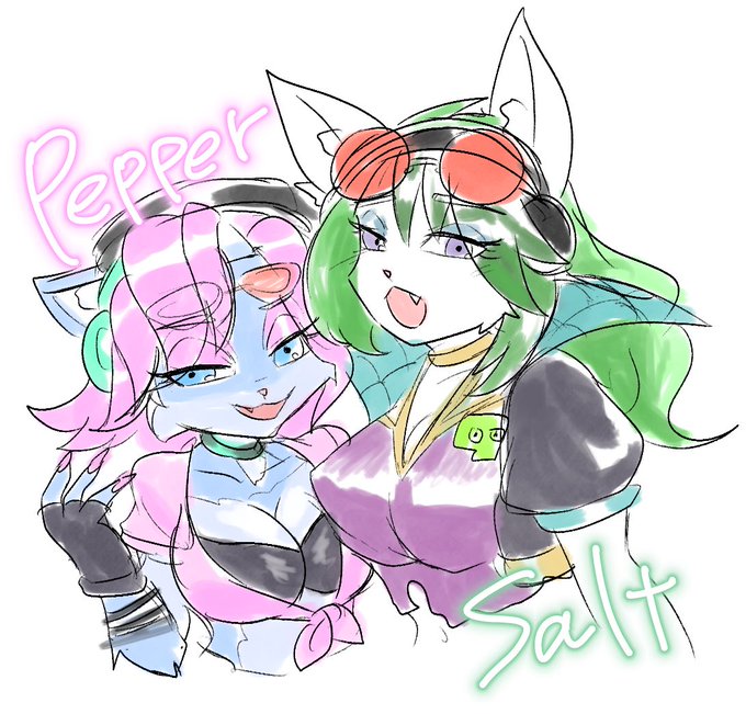 Salt, Pepper and Remixies in Greenwood! ソルトさんとペッパーさんのファンアートを描くつもりだったのにどんどん人物が増えて… ソルトさんの頭身をペッパーさんと揃えたかっただけ! #Paladinsart #Pepper #Salt