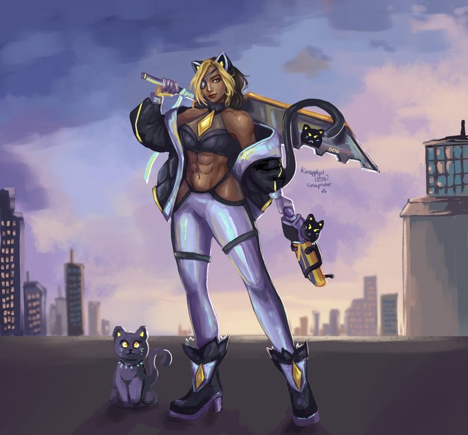 "I don't work. I slay." Day 6 of Conceptober: Battle Panther Samira (Anima Squad) I think the black panther thematic would suit her perfectly! #skintober #conceptober2022 #ArtofLegends #LeagueOfLegends #samira List by @EraiViolett