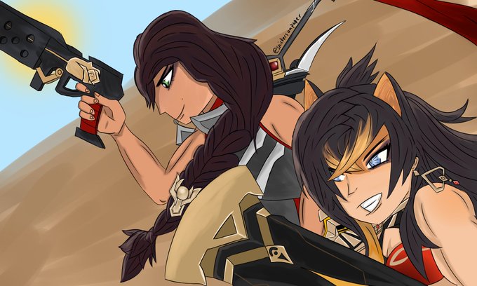 Dehya and Samira team up (idk for what you decide) #GenshinImpact #Dehya #LeagueOfLegends #LeagueOfLegendsFanArt #genshinimpactfanart #Samira