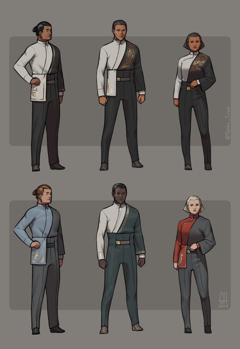 Sketching ideas for business/formal attire in my SF setting. Goal is to create shapes and decoration that read like a business suit, but from a different cultural lineage. #art #digitalart #scifi #scifiart #characterart #characterdesign