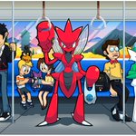 After a long day of running errands for it's trainer, Scizor gives itself a much needed rest by riding the Magnet Train Home. #PTCGIC2022 #Scizor #Digitalart #Pokemon #Fanart