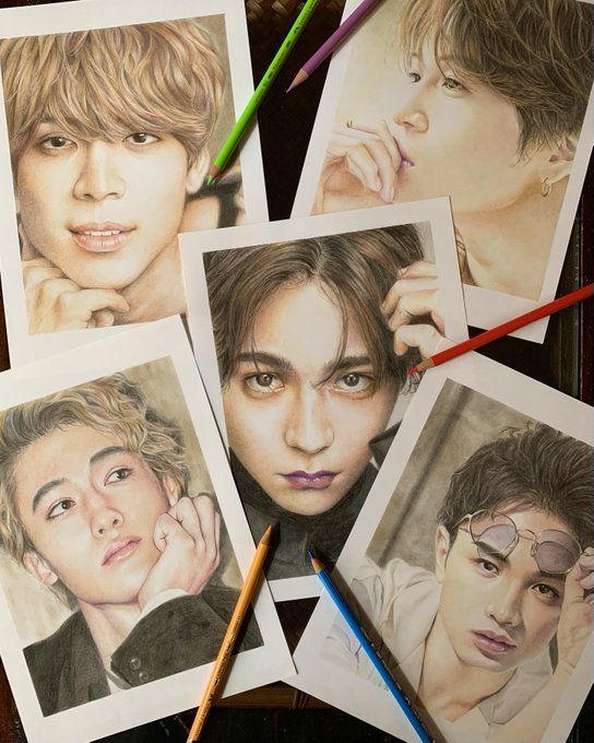 堂々と真直ぐな❤️ 優しく柔らかな💚 力強く華やかな💙 深くあたたかな💜 気高く愛らしい🧡 それぞれの大好きなところを描きたかったR 22年度🌹BDでした #SexyZone #色鉛筆画 #22年度ありがとう