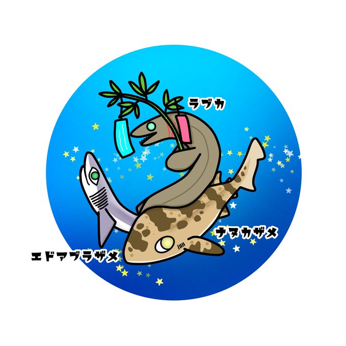 七夕チビザメーズ🎋🦈✨ 7月7日ということで、Sharpnose sevengill sharkことエドアブラザメと ナヌカザメ(七日鮫)を描きました✨ ラブカもいっしょ…! #サメ #イラスト #shark #illustration #七夕 #絵描きさんと繋がりたい